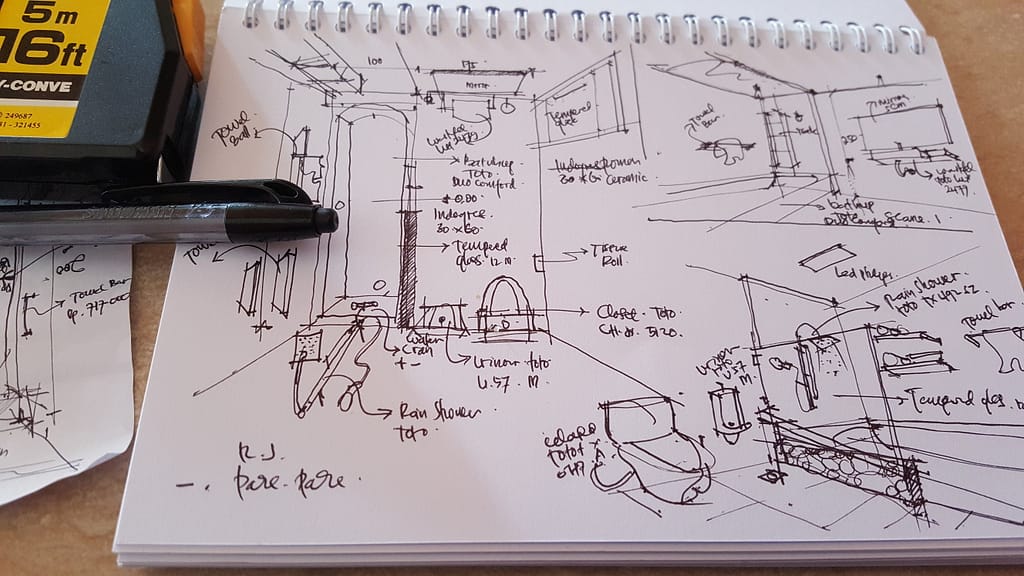Untuk yang satu ini, Anda juga bisa berkonsultasi dengan mereka yang telah ahli di bidang desain interior sehingga Anda bisa mendapatkan gambaran tentang penataan perabotan di dalam kamar mandi Anda sehingga tercipta estetika ruangan yang cantik.